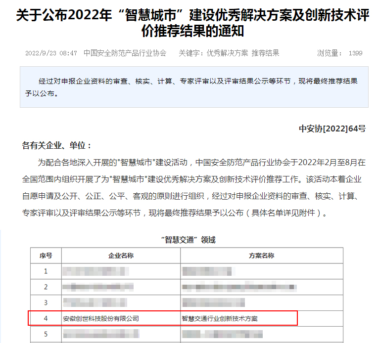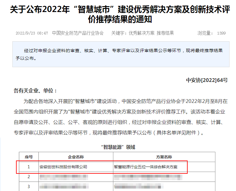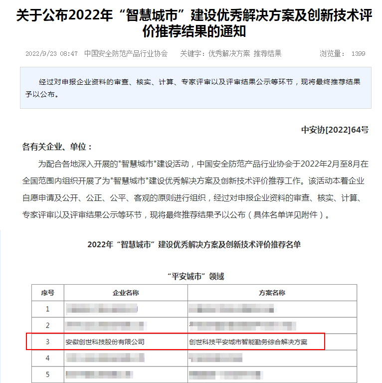 2022年“平安城市”*解決方案及創(chuàng)新技術(shù)提供商