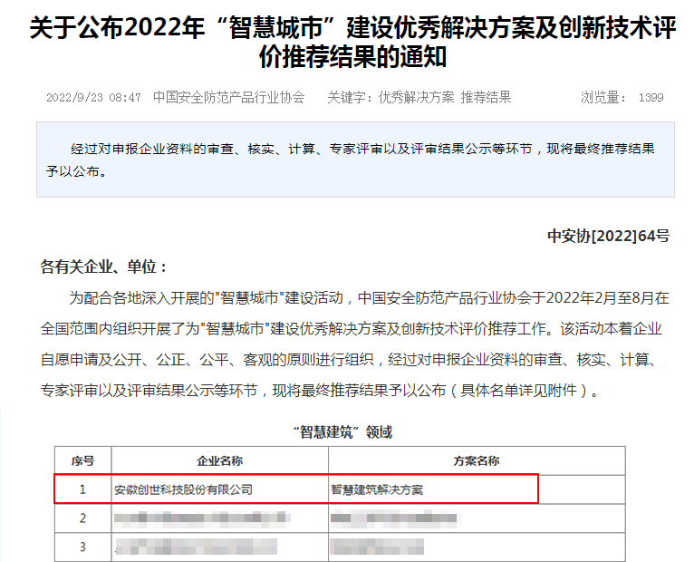 2022年“智慧建筑”*解決方案及創(chuàng)新技術(shù)提供商