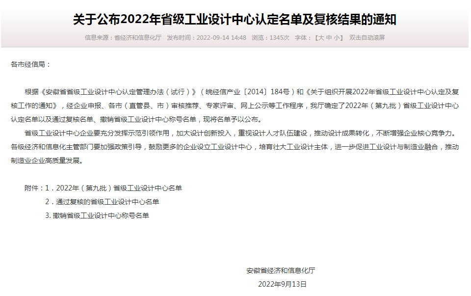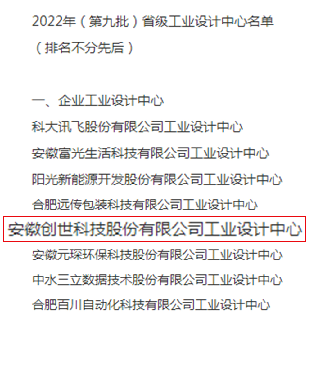 【企業(yè)動(dòng)態(tài)】硬技術(shù) 軟實(shí)力 | 賀創(chuàng)世科技獲批“安徽省省級(jí)工業(yè)設(shè)計(jì)中心”