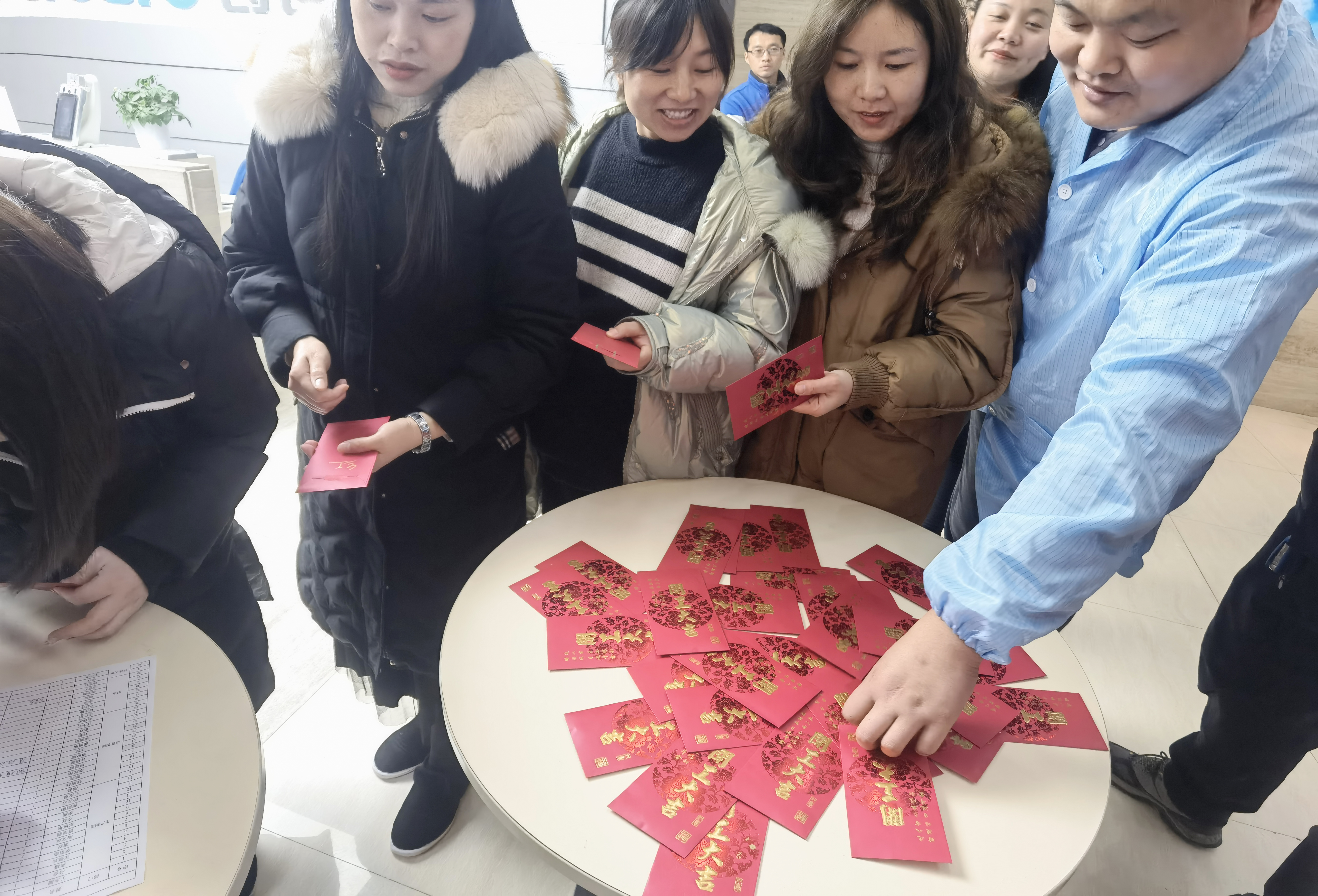 上午9:08,公司給各位員工發(fā)放了開工紅包,喻意吉利健康,生意興隆,同時也祝愿大家在新的一年幸福安康,工作順遂!