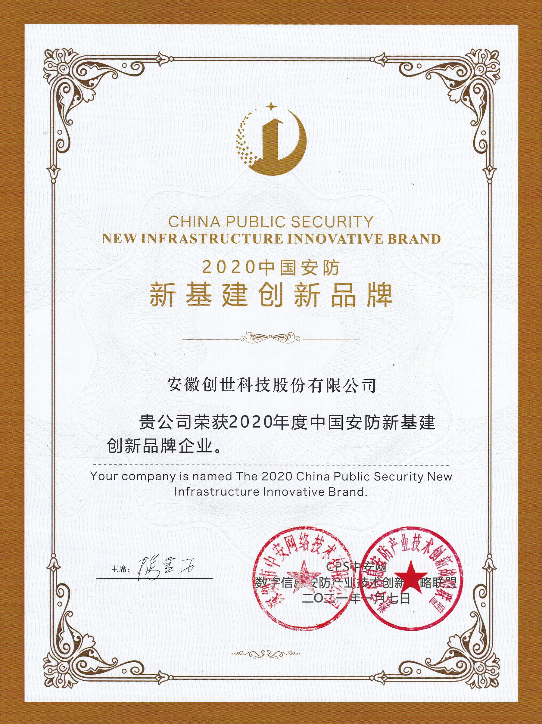 大會期間,由全國安防協(xié)會合作互助聯(lián)盟主辦的“第七屆中國安防杰出貢獻獎”在會上隆重揭曉。經(jīng)過大會嚴格公正的評選,安徽創(chuàng)世科技股份有限公司榮獲2020中國安防新基建創(chuàng)新品牌企業(yè)。