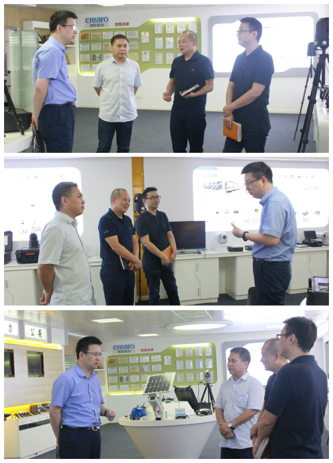 在總經(jīng)理張傳金等公司領(lǐng)導(dǎo)的陪同下,來(lái)訪領(lǐng)導(dǎo)一行參觀了創(chuàng)世科技的多功能產(chǎn)品演示廳。參觀中,市場(chǎng)總監(jiān)邵磊為來(lái)訪領(lǐng)導(dǎo)重點(diǎn)介紹了公司的發(fā)展歷程、榮譽(yù)資質(zhì)、經(jīng)營(yíng)情況,并詳細(xì)介紹了4G智能執(zhí)法記錄儀、智能高清布控球、4G安全帽、安卓單兵等無(wú)線應(yīng)急通訊設(shè)備的實(shí)戰(zhàn)應(yīng)用,得到了來(lái)訪領(lǐng)導(dǎo)的高度肯定。