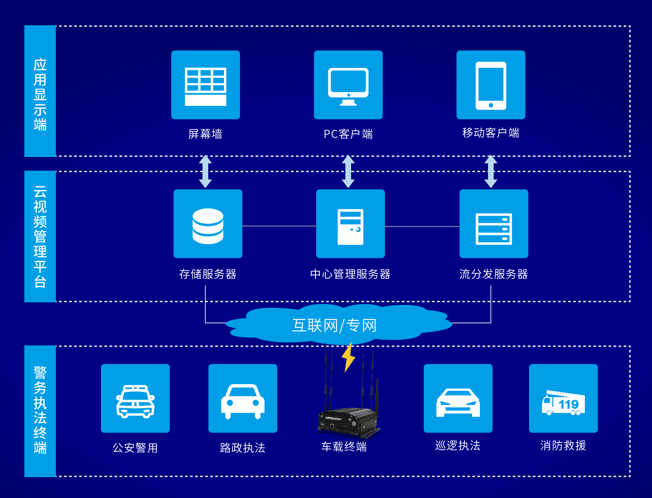 智能高清車(chē)載終端是警用應(yīng)急通信指揮系統(tǒng)的一個(gè)重要組成部分,對(duì)重點(diǎn)區(qū)域進(jìn)行高度密集部署,具有遠(yuǎn)程雙向音頻互通,移動(dòng)前端群組交互,同步指揮調(diào)度,高清視頻傳輸存儲(chǔ)等功能。