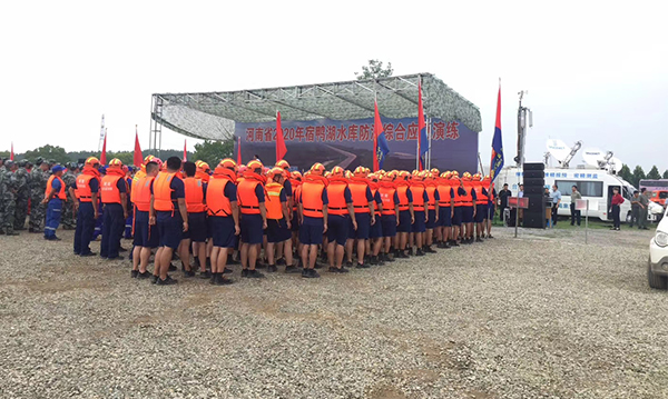 為認(rèn)真貫徹落實(shí)習(xí)近平總書記防汛減災(zāi)重要指示精神,提高各級應(yīng)急指揮和搶險(xiǎn)救災(zāi)能力,7月14日,由河南省防汛抗旱應(yīng)急指揮部主辦,河南省應(yīng)急管理廳、駐馬店市人民政府、河南省水利廳、河南省消防救援總隊(duì)、河南省軍區(qū)戰(zhàn)備建設(shè)局聯(lián)合承辦的“河南省2020年宿鴨湖水庫防汛綜合應(yīng)急演練”項(xiàng)目,在駐馬店汝南縣宿鴨湖水庫舉行。省應(yīng)急管理廳、省水利廳、省衛(wèi)健委、省人防辦、省氣象局等有關(guān)單位負(fù)責(zé)人,以及省消防救援總隊(duì)、轄市消防救援支隊(duì)等共約600人觀看了演練。創(chuàng)世科技應(yīng)邀為此次演練提供相關(guān)的應(yīng)急裝備和技術(shù)服務(wù)。