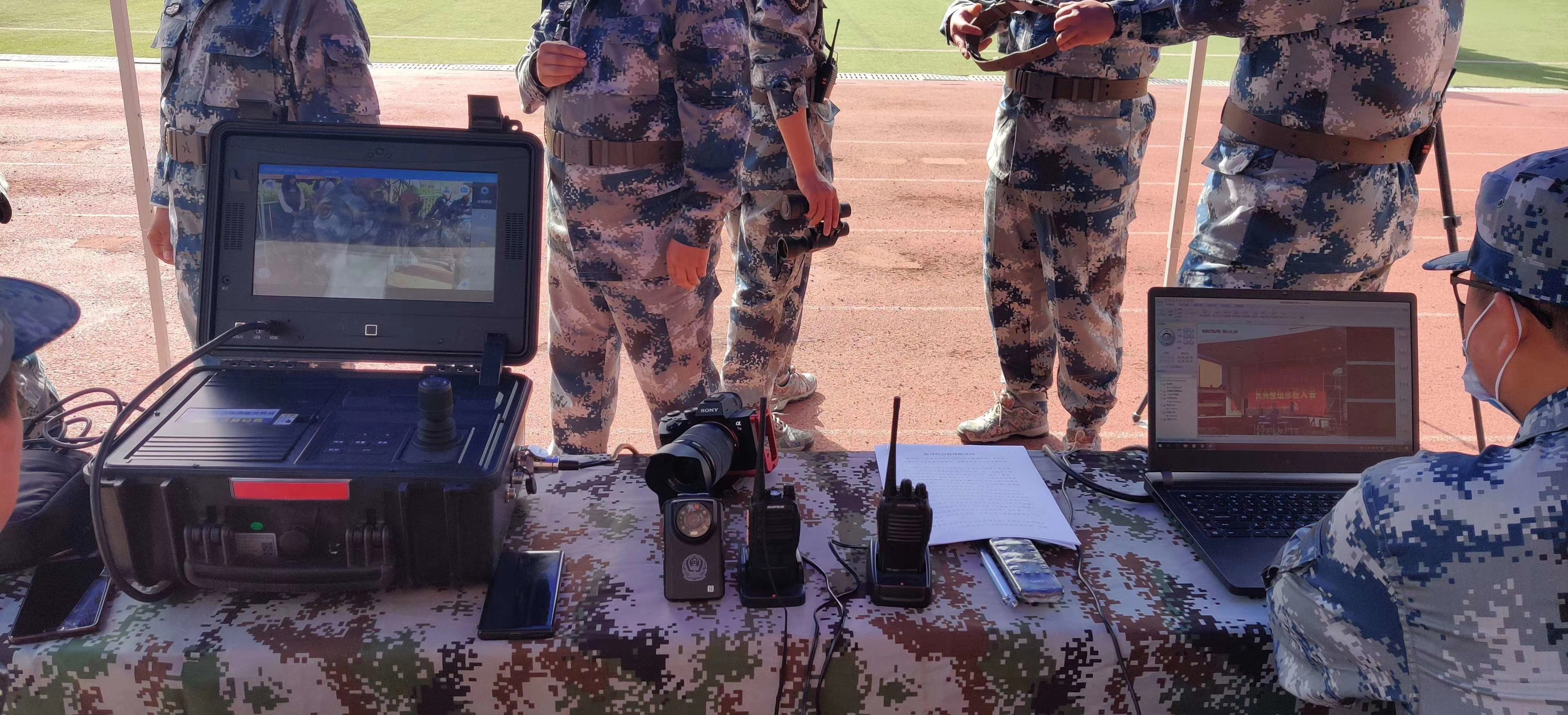在民兵整組點驗大會現(xiàn)場,利用創(chuàng)世無線應(yīng)急指揮產(chǎn)品,快速組建民兵訓(xùn)練的應(yīng)急指揮調(diào)度網(wǎng)絡(luò),為野外綜合救援等科目建立起一套可視化的移動視頻監(jiān)控作戰(zhàn)系統(tǒng)。