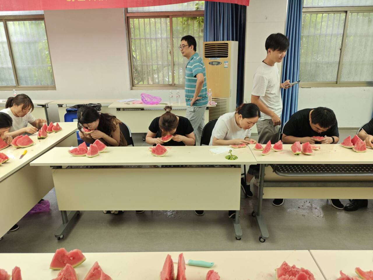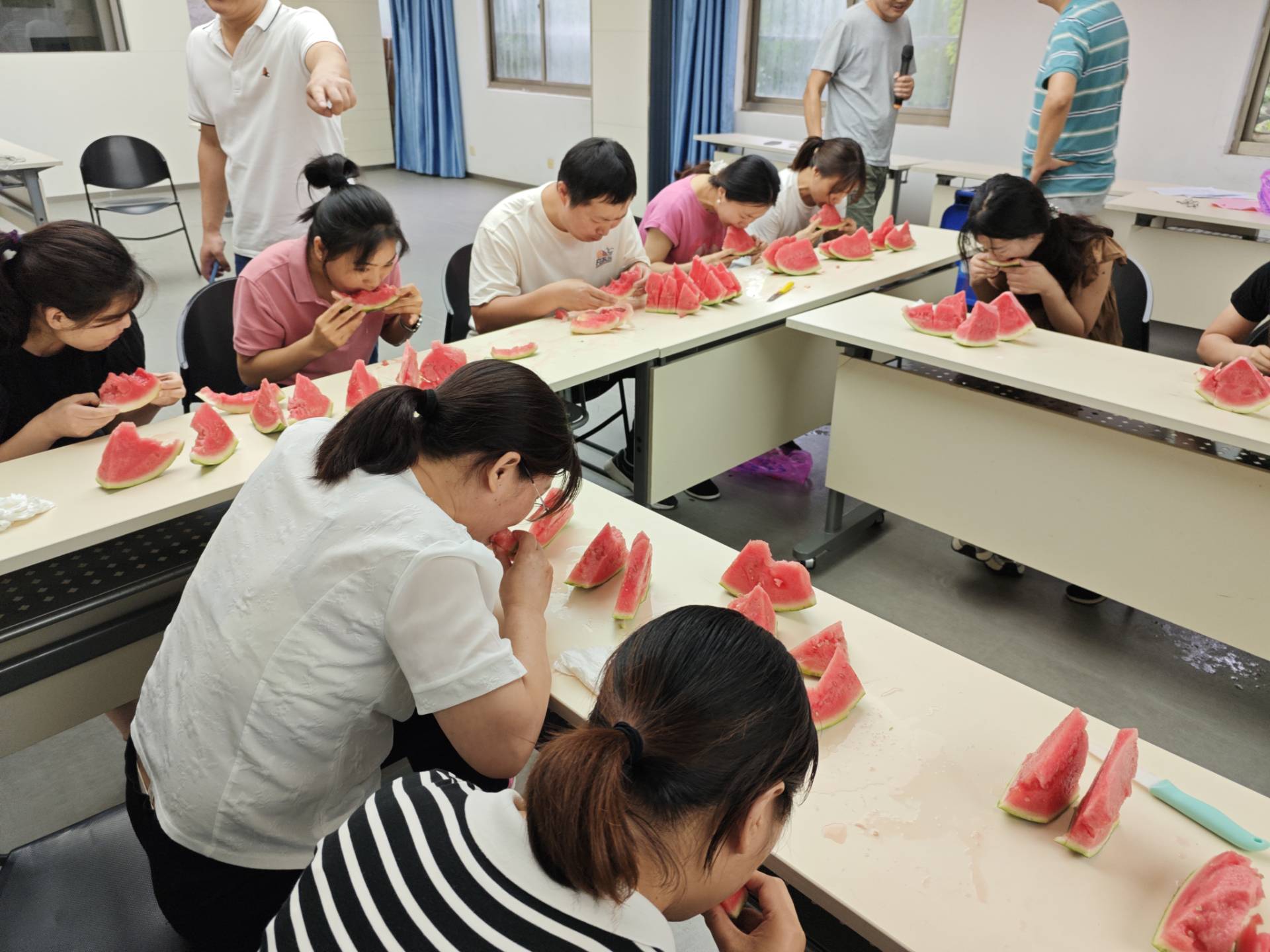 春天賞花,夏天吃瓜。無西瓜,不夏天。西瓜是夏天的“入場券”,吃瓜群眾在哪里?在“西”笑顏開中開展一場與西瓜的比拼!隨著裁判“預(yù)備~開始!”的口令發(fā)出,參賽隊(duì)員們各個“吃相”各異,盡顯“吃貨”本領(lǐng)。誰會是吃瓜小能手?哪個隊(duì)伍將會最終取勝呢?參賽選手們一邊感受著比賽的火熱,一邊品嘗著西瓜的清涼,別有一番樂趣。
