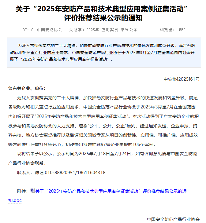 近日,中國安全防范產(chǎn)品行業(yè)協(xié)會(huì)公示了關(guān)于“2025年安防產(chǎn)品和技術(shù)典型應(yīng)用案例”擬定名單,安徽創(chuàng)世科技股份有限公司申報(bào)的公安局安防監(jiān)控項(xiàng)目,經(jīng)過資料審核、地方協(xié)會(huì)重點(diǎn)推薦、相關(guān)領(lǐng)域?qū)<揖C合評(píng)定,最終成功入選。